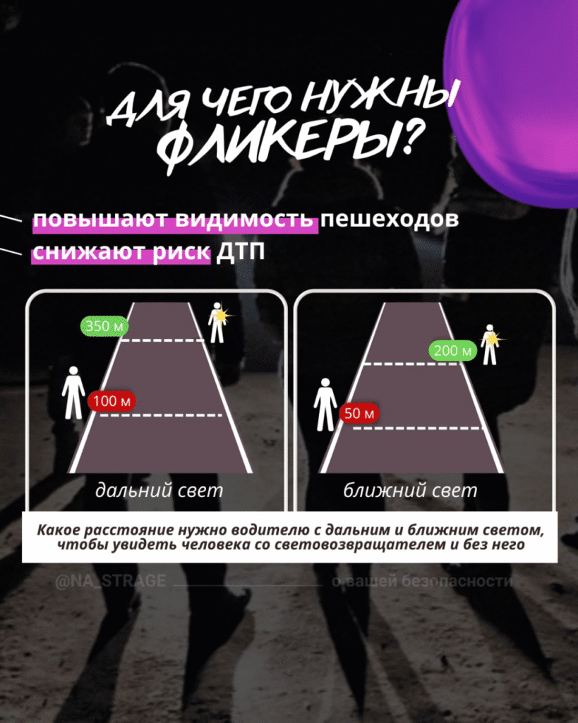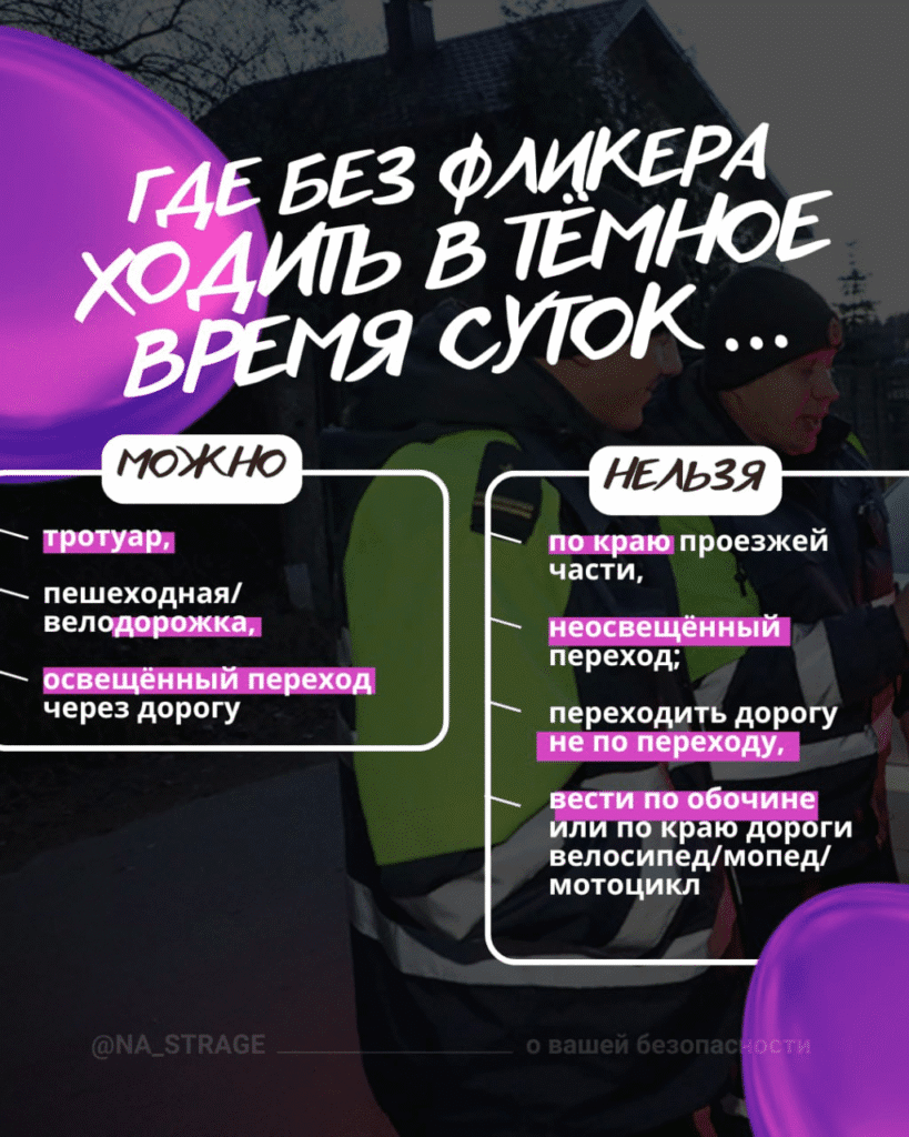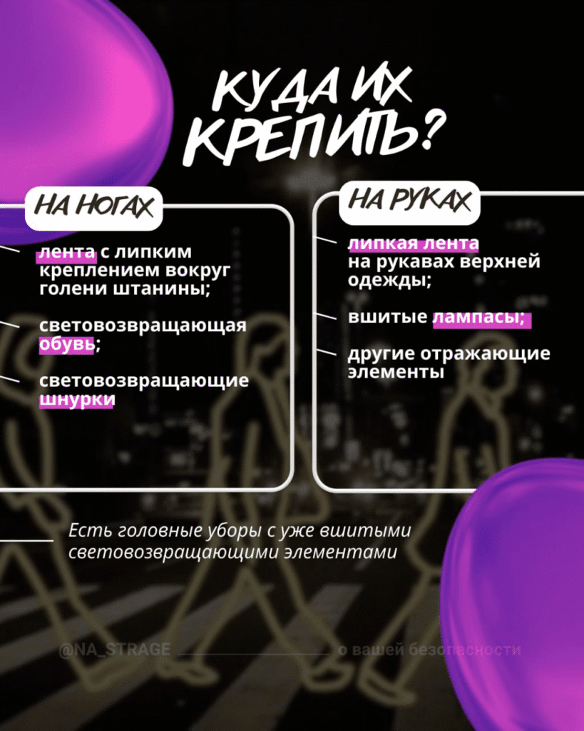 — носите световозвращающие элементы, чтобы быть заметнее;