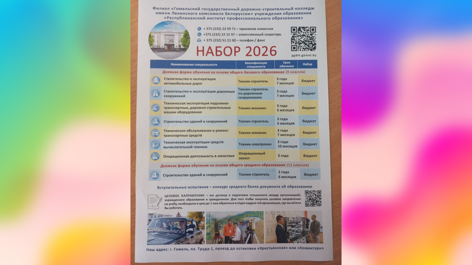 ✔️Учащиеся 9″Е» и 9″Ж» класса с классными руководителями посетили профориентационное мероприятие» День открытых дверей » на базе филиала» Гомельский государственный дорожно-строительный колледж «.